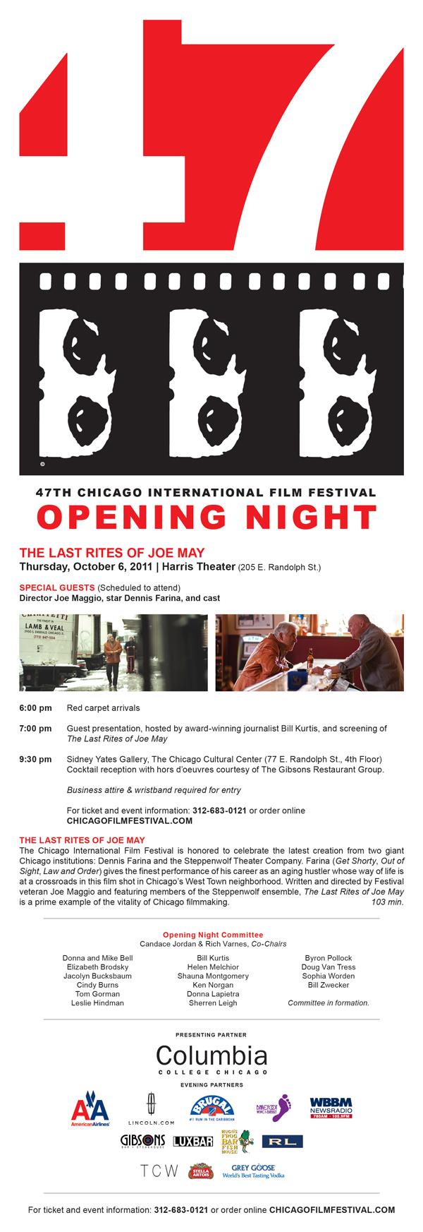 with the inaugural “Chicago Legend Award.” Other honorees include ad agency Leo Burnett and ESPN Films. The evening will feature a cocktail reception with hors d’oeuvres, followed by the awards ceremony in the main ballroom. Video clips will be screened with surprise guests from the industry. For tickets ($75) and more info, please visit www.chicagofilmfestival.com.