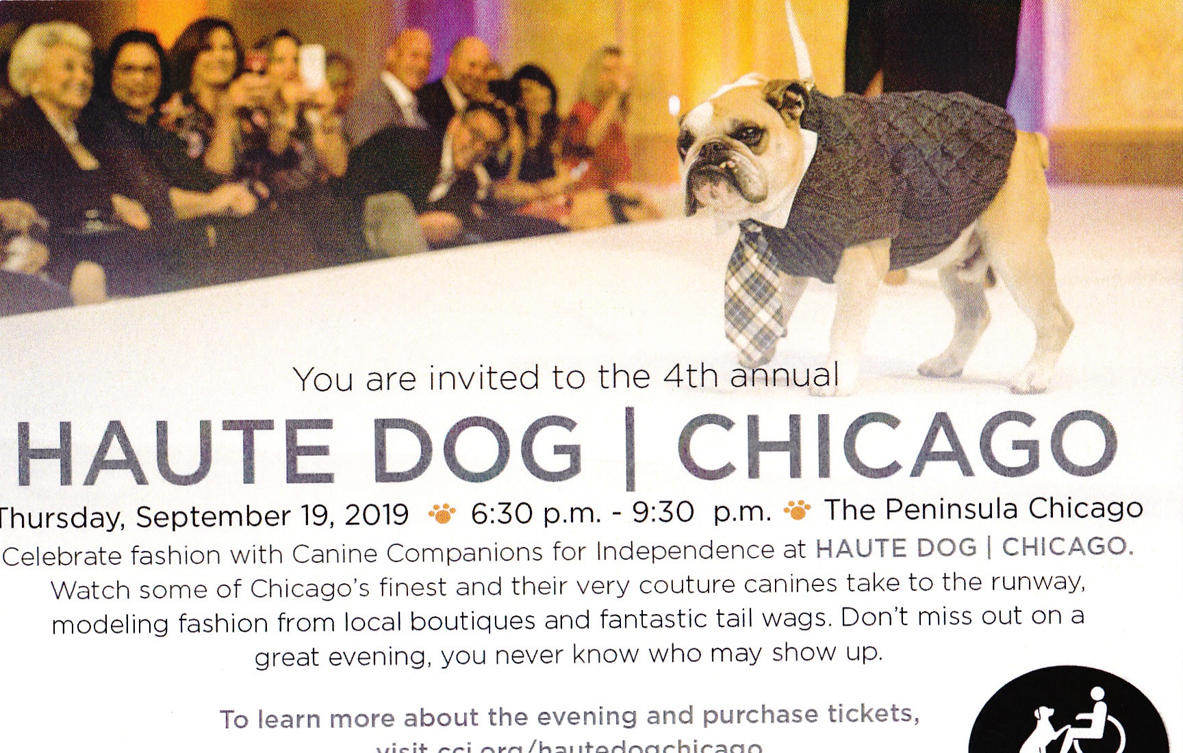 There are so many worthwhile charities that are hosting yearly fundraisers. Please check out some of my favorites: On Thursday, September 19 (Chuck's birthday), Haute Dog Chicago returns for the 4th year to the Peninsula. Benefiting Canine Companions for Independence, the evening will feature a doggie runway show, produced by ZZAZZ Productions, with lots of local notables! Click here for tickets/more info!