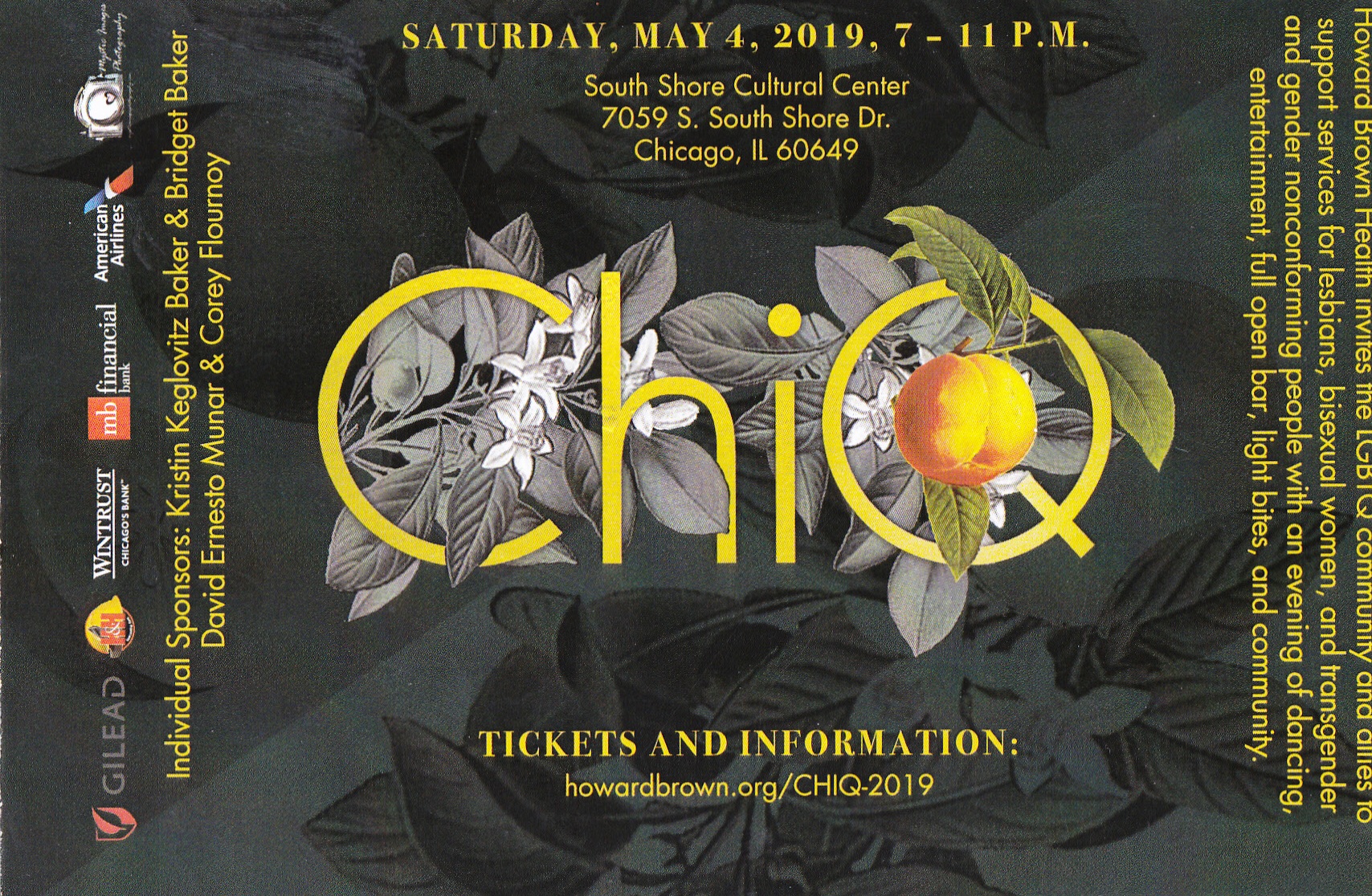On Saturday, May 4, the Howard Brown Health Center will present ChiQ, a fundraiser that raises money for the Center's women's services, at the South Shore Cultural Center (7059 S. South Shore Drive). HBH was founded in 1974 and is now one of the largest lesbian, gay, bisexual, transgender and queer (LGBTQ) organizations in the country serving more than 35,000 adults and youth each year. For tickets/more info, click here!