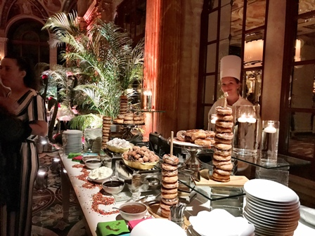 girls' Bunny photos that were scattered throughout the room and hanging from banners from the second floor mezzanine railing. We were ensconced in all things Playboy and I couldn't have loved it more. (A friend of mine, Shelley Rosen, Luxe Bloom, even created a standing arrangement of specially treated roses with the Playboy logo which was a popular photo opp.) These ladies